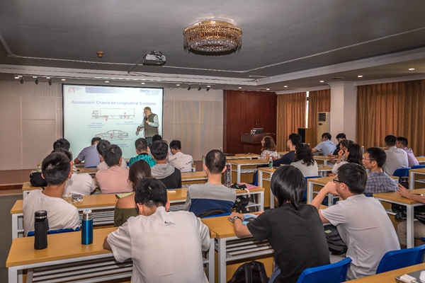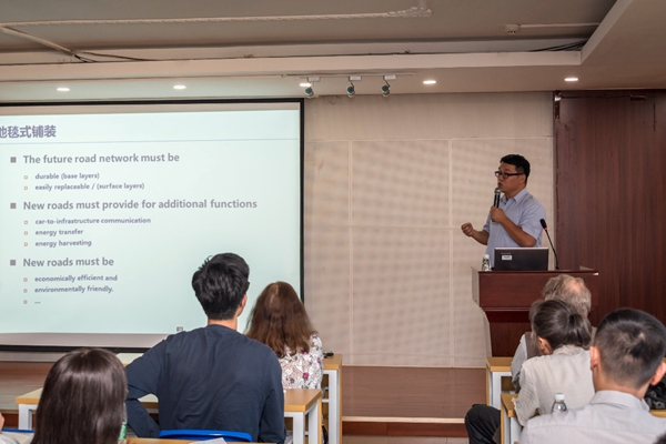 随后,亚琛工业大学Bernhard Steinauer教授和Dawei Wang教授在土木交通学院分别作了题为“Methods for the Assessment of Pavement Evenness”和“Continuously Assembled Rollable Polymer-Embedded Topping for Roads”的学术报告,与土木与交通学院的师生进行了深入的学术交流和讨论。(图文/土木与交通学院)