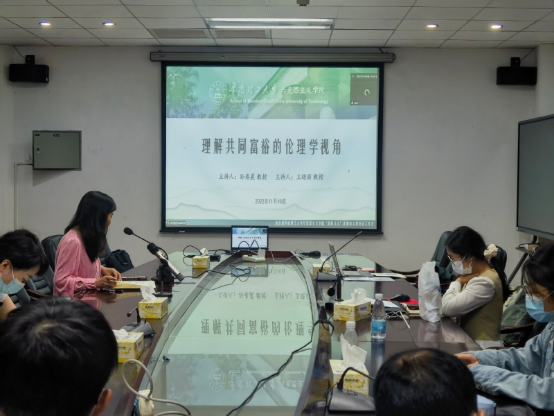 作为全国高校“双带头人”教师党支部书记工作室培育单位,华南理工大学马克思主义学院基础教研室党支部积极开展党建品牌化建设系列活动。11月10日下午,由基础教研室党支部(“双带头人”工作室)主办的“党建与业务齐精进”系列活动的首场学习讲座顺利召开,中国社会科学院哲学研究所研究员、中国社会科学院大学哲学院教授、中国伦理学会会长孙春晨应邀作主题为“理解共同富裕的伦理学视角”的学术报告。报告会以线上与线下相结合的形式举行,由基础教研室党支部书记王晓丽教授主持。