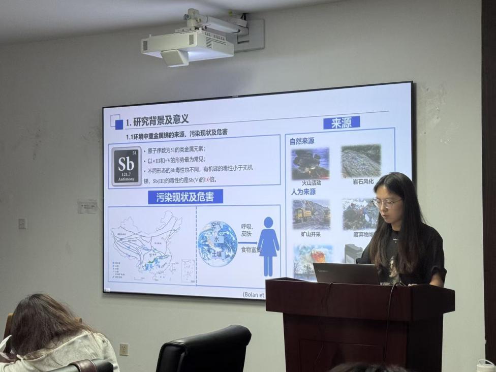 最后是追新学院的陈卓妍同学,她重点讲述了自己的研究内容进展,有关研究创新点引起了大家的兴趣,芦荟们围绕这种铁基矿物后续应用的问题展开了深入探讨。