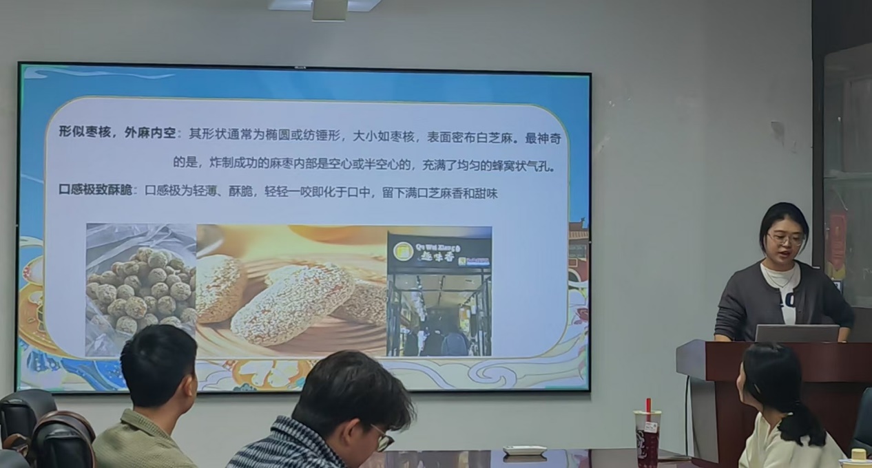 会议伊始,特产分享环节先声夺人。来自所油联队的袁瑞同学为大家带来了来自湖南长沙的特产麻枣。她生动讲述了这是一种形似枣壳,外麻内空的鲜食枣品种,入口“咔嚓”碎成一片清甜,瞬间点燃味蕾,也让会场提前升温。