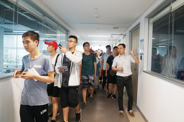 软物质研究院是晋城一中师生走访华南理工大学的最后一站,师生先后参观了化学实验室、学生办公室、展厅,了解软物质研究的内涵、科研环境和研究生学习环境。“这才是想象中的高科技科研实验室啊!”部分师生在参观后发出感叹。