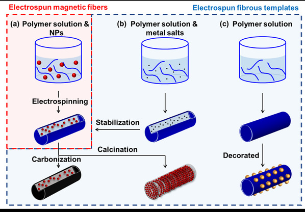 华南理工大学分子科学与工程学院及华南软物质科学与技术高等研究院团队近日在《Journal of Materials Chemistry C》刊发综述文章,总结了近20年来基于静电纺丝技术所制备的一维磁性纳米纤维材料的研发思路、结构和性能,并系统介绍了它们在电磁屏蔽、过滤分离、组织工程支架、细胞诱导分化、热疗、药物递送、纳米发电机、数据储存与转移方面的应用。