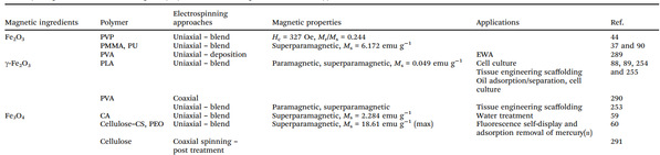 表1.基于共混方法制备电纺磁性纤维的工艺、性能与应用(全表见原文)