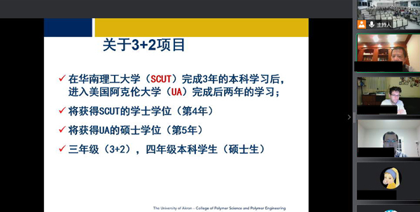 2019级作为我院首届本科生将迎来专业分流、出国交流等学业上新的转折点。为拓宽我院本科生国际视野,感受多元文化,我院与美国 Akron大学 “3+2” 联合培养留学项目即将启动,并于10月23日晚面向化类相关专业举行线上答疑宣讲会,鼓励符合条件的大三本科生积极申请。院长十分关心我院高年级本科生的未来规划,次日在院长面对面交流活动中,以自身经历鼓舞勉励学生:“我这一生最高的成就都体现在高分子研究上,但你们可能不知道其实我大学本科学习的是数学专业。我是从上海华东师范大学数学系毕业到华东纺织工学院来做老师,然后考上了钱宝钧先生的第一届研究生。我总是说东华大学是我人生轨迹的转折点,因为就是在东华大学我才真正开始从数学变成一个高分子的研究生。对于你们来说,‘3+2’国际交流项目将会成为你们人生轨迹中一个重要的转折点,或将影响你们一生的走向。作为学院我们能做到的是尽最大能力为你们提供优质的国际教育资源,而最终能否把握住这个机遇,还看你们自己的努力” 。