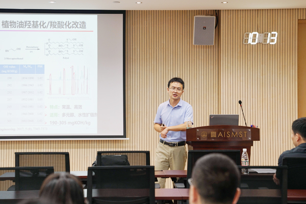 8月30日,华南农业大学张超群教授受邀到访前沿软物质学院,为我院师生做主题为“植物油碳碳双键异构化与分子链重组”的学术报告,分享用植物油对纤维素进行改性的科研经历。