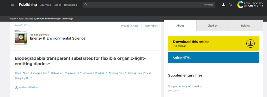 Hongli Zhu, Zhengguo Xiao, Detao Liu,c Yuanyuan Li, Nicholas J. Weadock, Zhiqiang Fang, Jinsong Huang and Liangbing Hu*