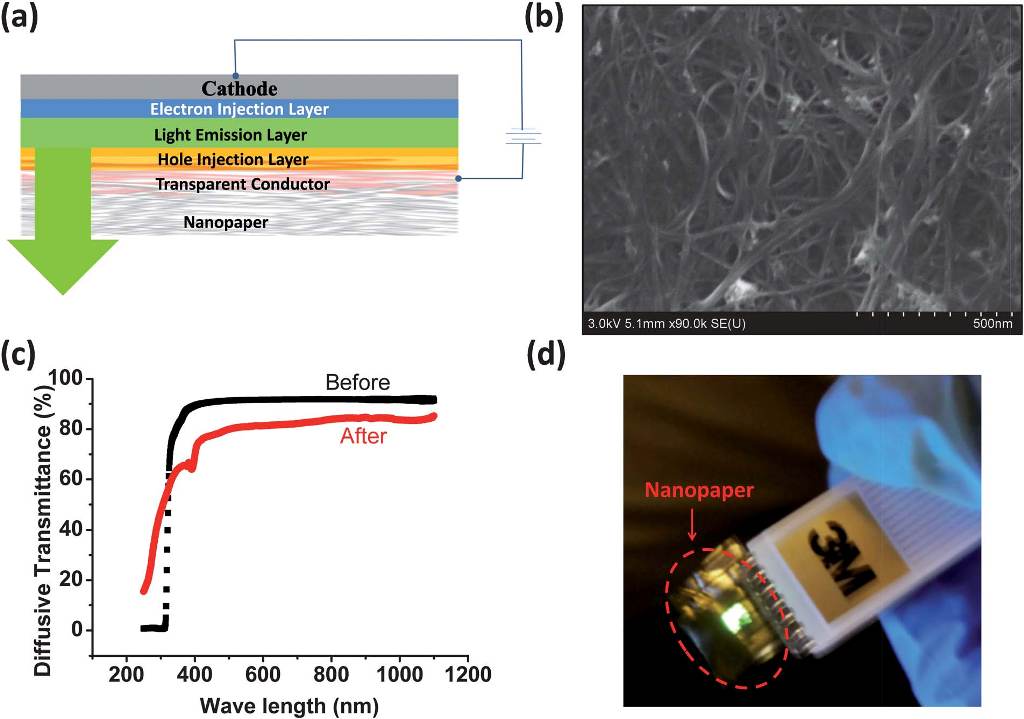 It firstly reported to fabricate flexible OLED by using nanopaper.