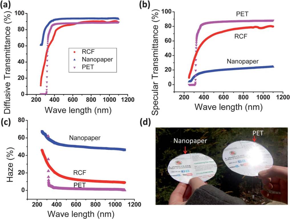 柔性和透明基板上的电子产品由于其新功能和高速卷对卷制造工艺而受到广泛关注。基材的性能至关重要,包括柔韧性、表面粗糙度、透光率、机械强度、最高加工温度等。尽管塑料衬底已广泛应用于柔性微电子,但仍需要下一代可持续的高性能衬底,这些衬底具有可调的光学特性和更高的处理温度。在这篇文章中,我们关注的是基于纤维素的透明、可生物降解的底物,其中包括纳米纸或再生纤维素膜(RCF)。我们发现它们的光学和机械性能都有很大的不同,这是由于它们的构建模块的不同。高柔性有机发光二极管(oled)也被展示在可生物降解的衬底上,为下一代绿色和柔性电子产品铺平了道路。