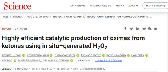 负载的金-钯(AuPd)合金纳米粒子与钛硅酸盐-1 (TS-1)催化剂结合,可以根据需要原位产生H2O2,产生选择性>95%的环己酮肟,发表在国际顶级期刊《Science》上