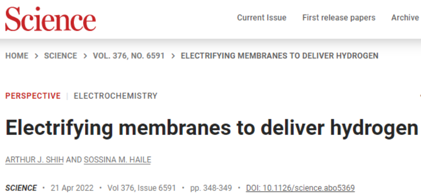【2】Arthur J. Shih and Sossina M. Haile. Electrifying membranes to deliver hydrogen An electrochemical membrane reactor enables efficient hydrogen generation. Science, 2022, 376:348-349.