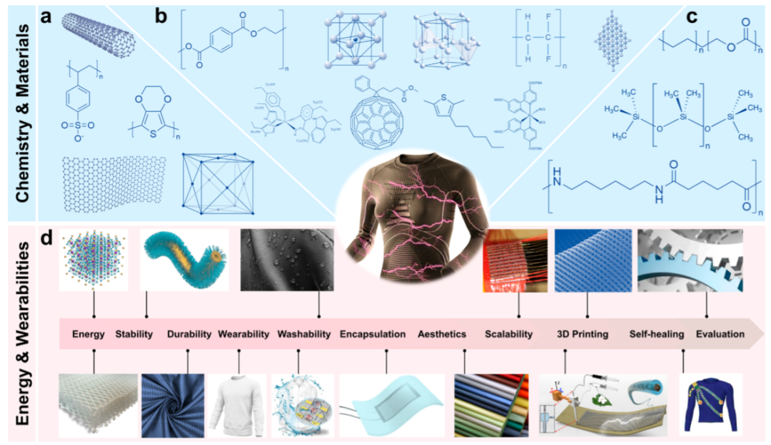 图3. 从化学/材料和能源/可穿戴性出发的关于发电智能纺织品的结论和展望