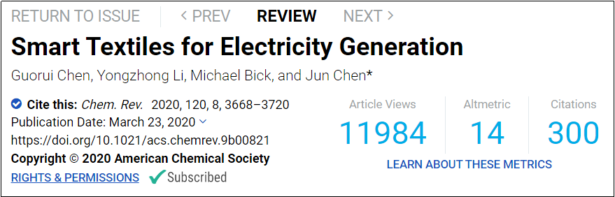 UCLA陈俊教授Chem. Rev.:用于发电的智能织物