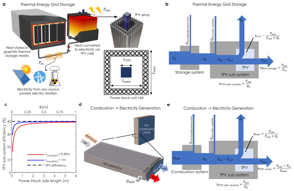 这些电池可以集成到 TPV 系统中,用于热能电网存储,以实现可调度的可再生能源。这为热能电网存储创造了一条途径,以达到足够高的效率和足够低的成本,从而实现电网的脱碳。