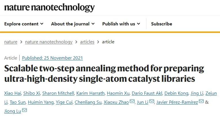 Nature Nanotechnology:如何大规模合成超高密度单原子催化剂库?