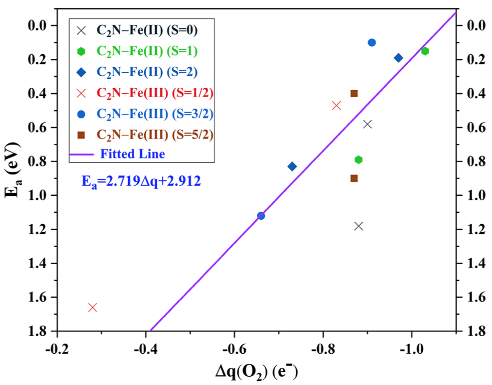 要点2. 催化活性和自旋矩变化之间的近乎线性关系表明,电子自旋磁矩是一种很有前途的Fe单原子基催化剂的催化描述符。