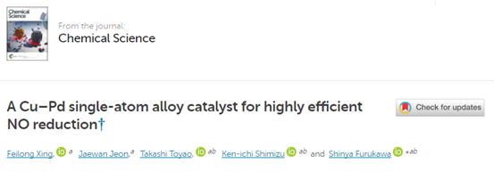 Feilong Xing, et al. A Cu–Pd single-atom alloy catalyst for highly efficient NO reduction.Chemical Science. 2019