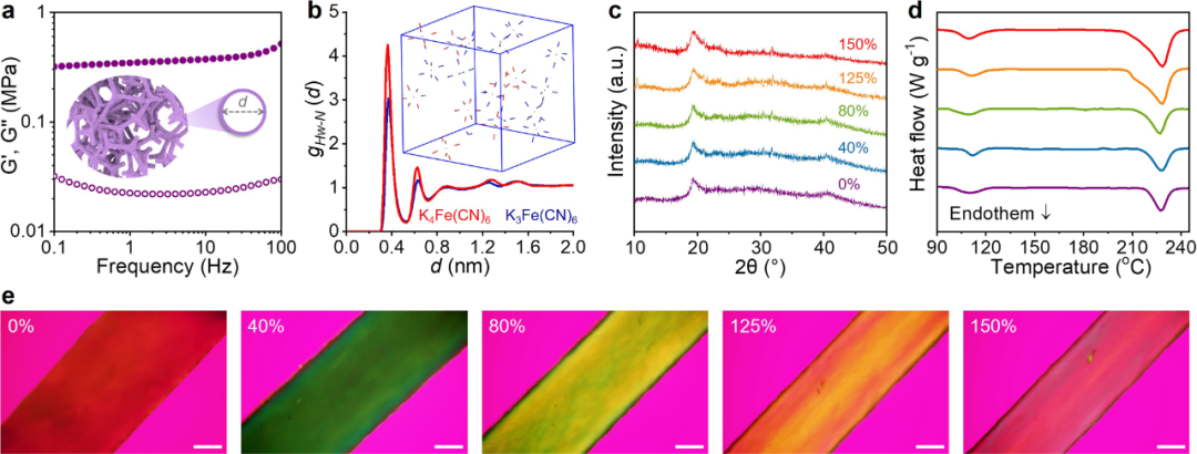 图2. 经历预拉伸应变训练下的离子热电池的结晶结构。