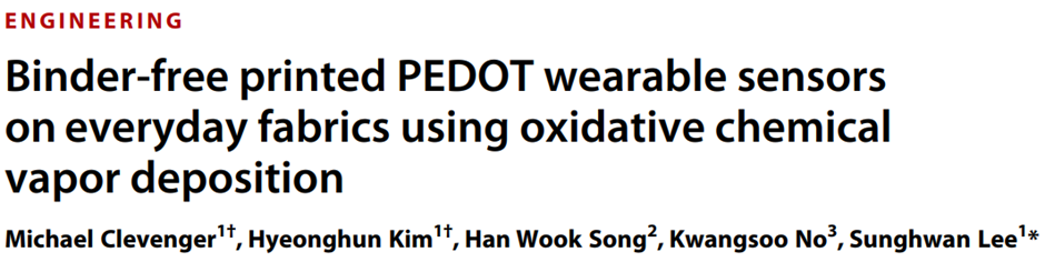 文章标题:Binder-free printed PEDOT wearable sensors on everyday fabrics using oxidative chemical vapor deposition