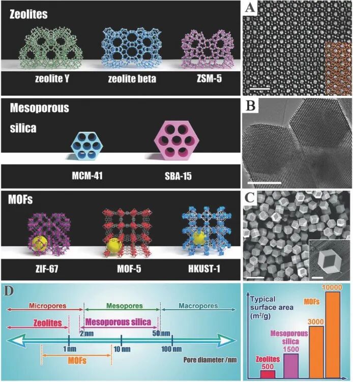 沸石(Zeolites)是一类重要的微孔材料,源自希腊语“沸腾”和“石头”两个词。18世纪50年代,瑞典矿物学家Axel Fredrik Cronstedt观察到一种矿石在加热时,吸附于其中的水会变成大量水蒸气,由此而得名 [1]。沸石在化学化工领域有着广泛的应用,有序的微孔结构使得各类沸石常被用作具有尺寸选择性和形状选择性的催化剂及吸附剂。为了改善沸石的吸附和催化性能,人们想了很多方法来调节沸石的形态和尺寸。自20世纪40年代Richard Barrer首次人工合成沸石以来,国际沸石协会(IZA-SC)结构委员会已确认 200多种天然或人造的沸石骨架[1,2]。