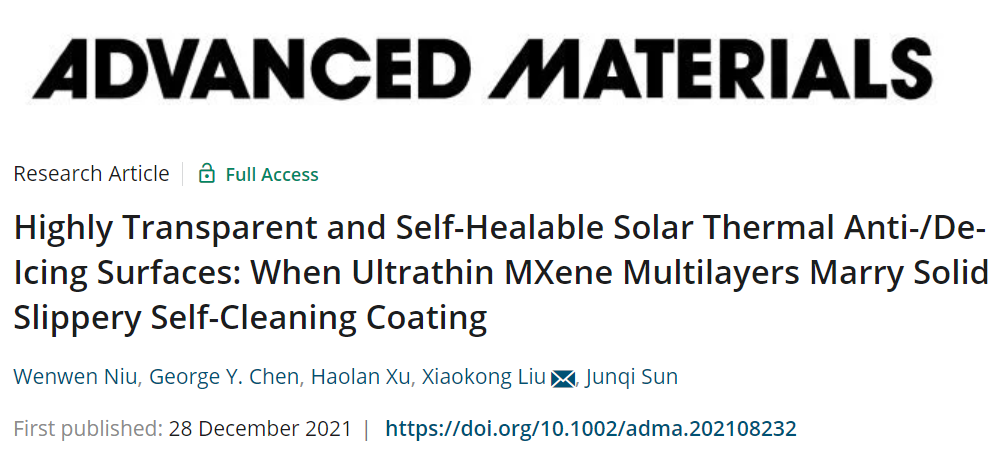 吉林大学刘小孔教授AM:再也不用担心车挡风玻璃结冰了,可吸收太阳能的高透明度光热除冰材料