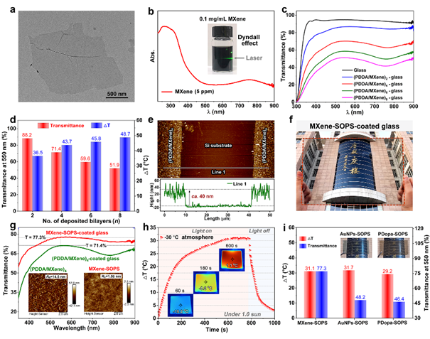 图2 MXene-SOPS涂层的透明性和光热转换性能