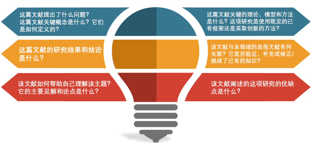当研究者检索到了一篇文献之后,不要立即下载,也不用通读全文,以免浪费时间。一般正确的做法是,先阅读摘要,确定该文献是否与自己的研究问题相关。当研究者找到一本和研究问题非常契合的有用的文献时,ta可以直接根据这篇论文的参考文献寻找其他相关的文献。研究者要确定与自己的研究主题相关的最重要的文献,特别要注意那些被大量引用的文献。如果相同的作者、文献不断出现在研究者的检索文章中,一定要找到它们,扩充自己的文献库。研究者即使再勤劳,也不大可能完全寻找并阅读关于研究方向和主题的所有文章,但ta必须评估手头上哪些文献与自己的问题最相关。对于已下载保存全文的每份文献出版物,研究者要问问自己: