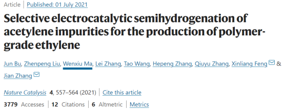 Jun Bu et al. Selective electrocatalytic semihydrogenation of acetylene impurities for the production of polymer-grade ethylene . Nat. Catal. 2022