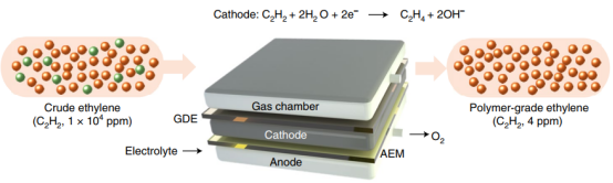 图 1:电化学乙烯纯化(乙炔选择加氢)示意图。