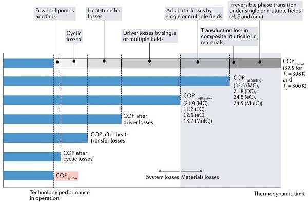 从材料制冷性能系数出发,揭示了驱动损失、传热损失、循环损失、寄生损失四类损失对于器件制冷性能系数逐级削减的影响规律,提出在器件设计中多场材料与器件的性能评价体系。