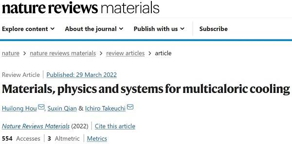 固态相变制冷上的进展 发在了Nature Reviews Materials