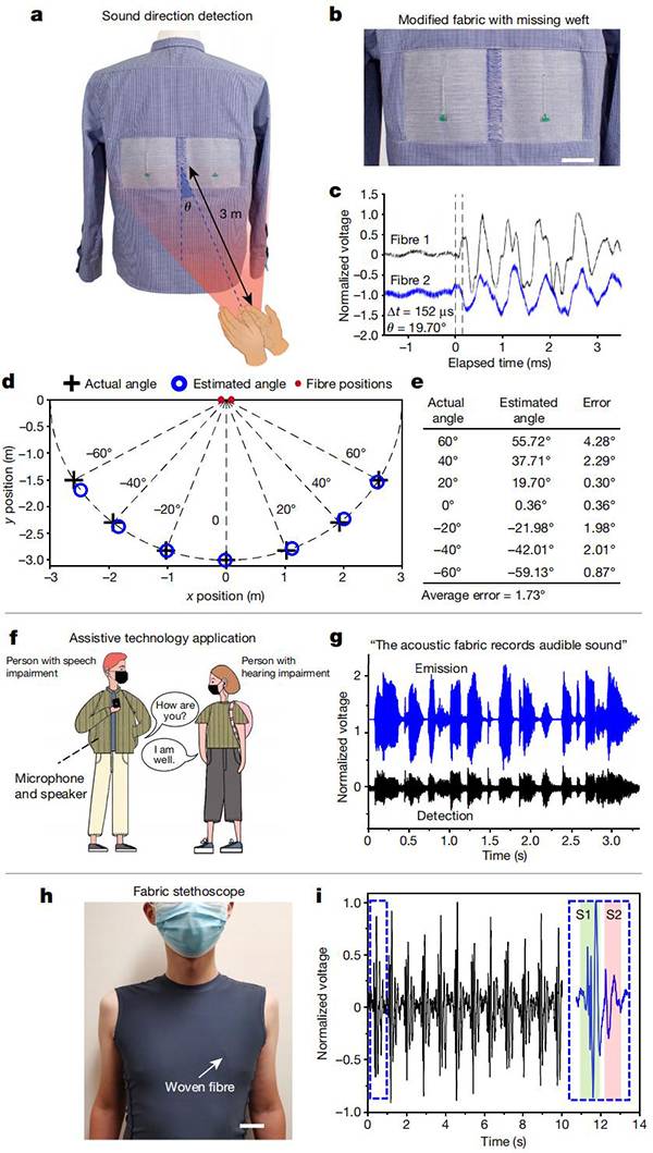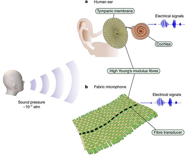 织物无处不在,再加上纤维技术的最新突破,使之能够挑战织物的传统用途,以包含新的和潜在的用途。其中,织物最近已被证明可以存储能量、交流、加热、冷却、显示甚至存储和处理数字信息。 受织物使用范围、其与人体无与伦比的接近性以及声学信号的重要性的推动,着手研究织物是否可以作为有效的声音收集器来检测和处理甚至微弱的听觉信号。在织物使用方面的这种转变,如果织物能够调节声学通信,从身体中获取声学健康指标将是一件具有里程碑的应用。