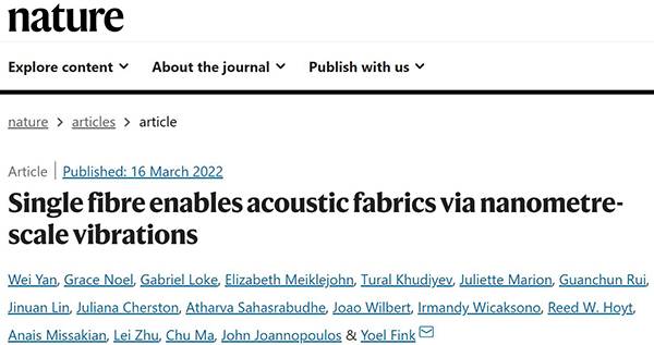 文献链接:“Single fibre enables acoustic fabrics via nanometre-scale vibrations”(Nature,2022,10.1038/s41586-022-04476-9)