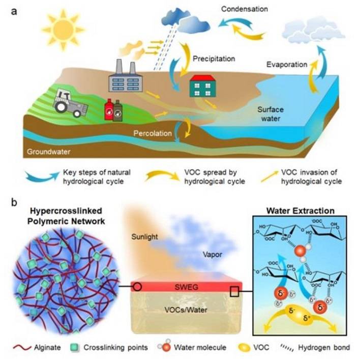 (b)通过界面太阳能水蒸发实现VOCs管理,其中SWEG作为光热蒸发器。