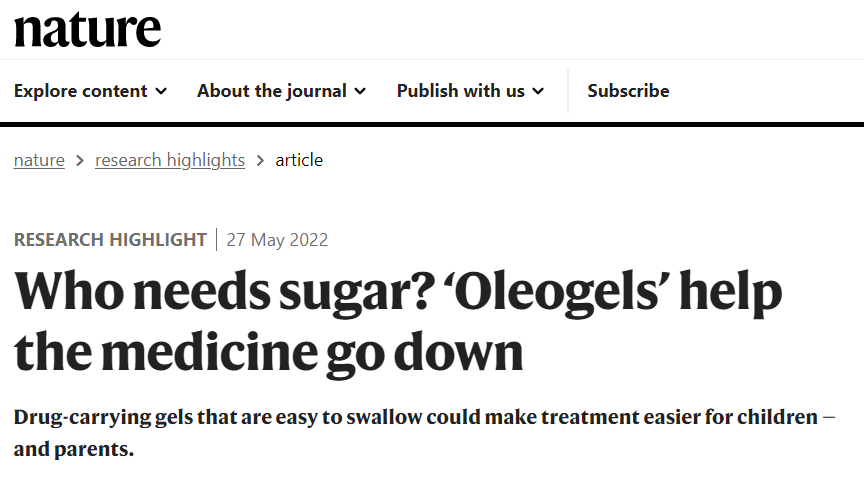 分子料理“油凝胶”,开辟儿童给药新方式!