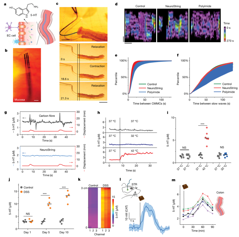 图|NeuroString用于监测大脑和肠道中的神经递质
