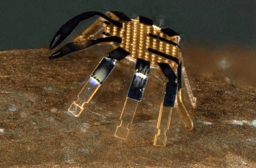 “通过这些组装技术和材料概念,我们可以制造几乎任何尺寸或3D形状的步行机器人,”罗杰斯说。“但学生们对小螃蟹的侧身爬行动作感到鼓舞和逗乐。这是一种创造性的奇思妙想的研究领域。”罗杰斯说。“而微型机器人的发展是学术探索的一个有趣话题。”