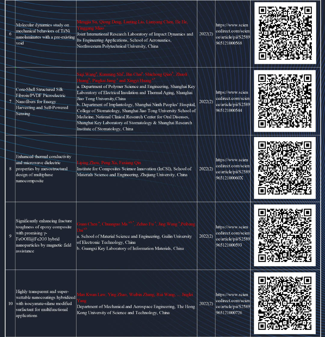NMS已报道诺贝尔物理学奖得主Konstantin Novoselov院士、吕坚院士、Ruslan Z Valiev院士、卢柯院士、成会明院士、申长雨院士、赵东元院士、段雪院士、侯保荣院士、孙军院士、王琪院士、张立群院士、Oliver G. Schmidt院士、Li Lu教授(新加坡国立大学)、Luyi Sun教授(美国康涅迪格大学)、Vijay Kumar Thakur教授(英国苏格兰乡村学院)、张强教授(清华大学)、郭少军教授(北京大学)、张荻教授(上海交通大学)、刘刚教授(西安交通大学)、彭章泉教授(中科院大连物化所)、刘畅教授(中科院金属所)、刘天西教授(江南大学)、胡宁教授、付绍云教授、黄晓旭教授、魏子栋教授、张育新教授(重庆大学)等研究团队论文。