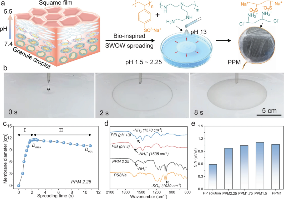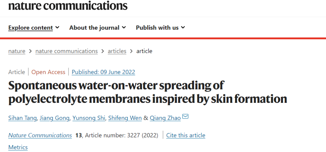 华中科技大学赵强教授《自然·通讯》:在水面上再铺一层水?受皮肤形成启发,自发水-水界面铺展的聚电解质膜!