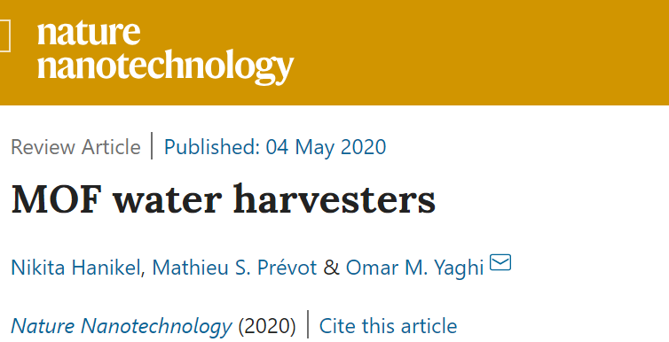 出手就是Nature Nanotech.,大神Omar M. Yaghi带你空气中捕获淡水,见证MOF神奇!