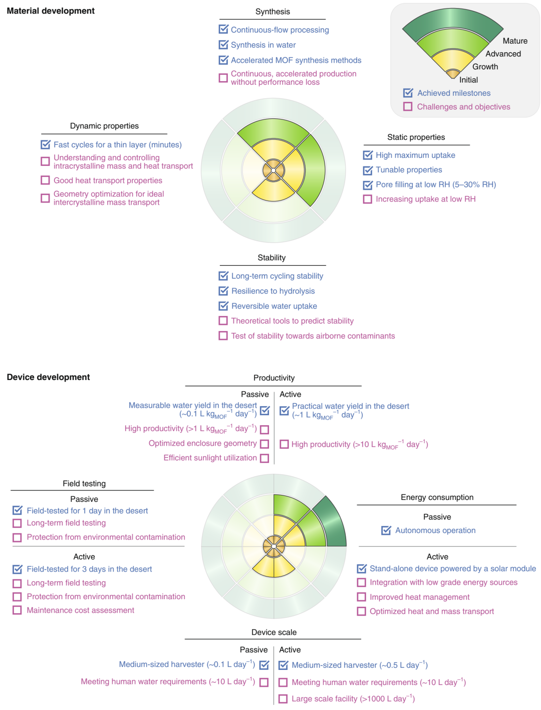 研究人员通过案例分析了最近MOF大气集水器的设计,并指出了该领域目前的技术状态和未来的方向。目前在理解MOFs的网状化学与各自的静态水吸附特性之间的关系方面取得了重大进展。此外,还设计了数个由MOF辅助的大气集水器,并在沙漠环境中成功运行。尽管如此,在材料和器件的发展水平上,仍有许多研究机会来扩展这一新兴和令人兴奋的领域,如大规模生产和加工具有成本效益MOFs等。Nikita Hanikel, et al. MOF water harvesters. Nat. Nanotechnol. 2020.DOI: 10.1038/s41565-020-0673-x.https://doi.org/10.1038/s41565-020-0673-x