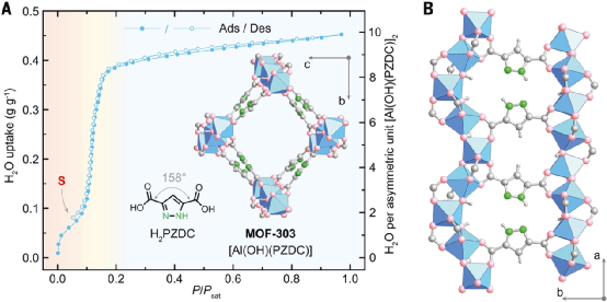 近期研究发现,MOF在分子水平上可以提取沙漠中的大气水以生产饮用水,并且进行释放。事实上,人们正在寻求 MOF 和合成晶体中水分子结构的演变,但仍然缺乏对水分子吸收行为的完整理解。