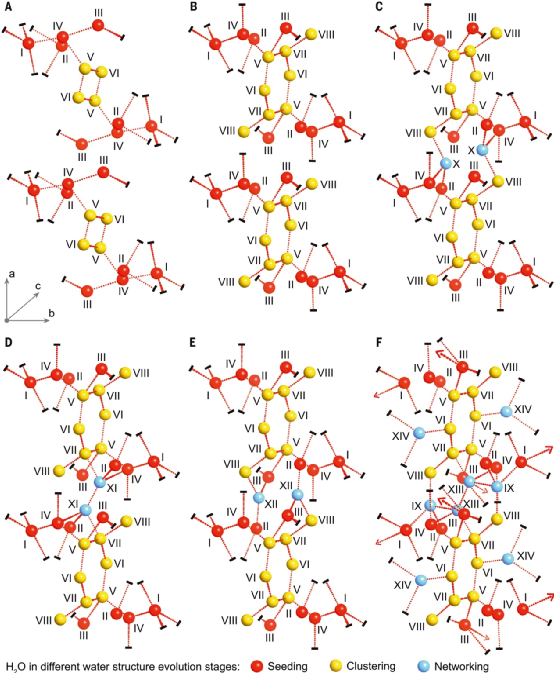 图3. MOF-303 中水分子结构在增加载荷下的演变