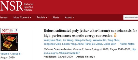 《国家科学评论》:盐度梯度渗透能发电,达到商业基准!!!