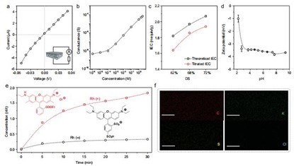 图2. SPEEK膜的离子传输特性和选择性。