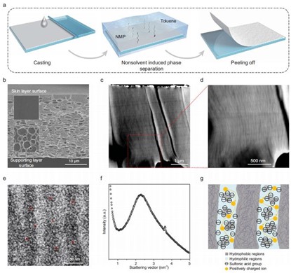 图1. SPEEK膜的制造方法和纳米通道的表征。