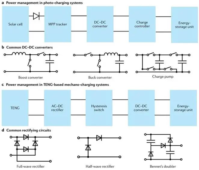 (c)基于TENG的机械充电系统中的电源管理电路;
