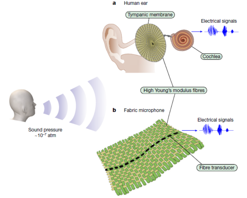 那么,织物是否可以作为一个有效的声音收集器来监测并处理微弱的可听信号(10-7大气压)?这类织物能否穿戴舒适、美观、透气防汗且耐受机洗?