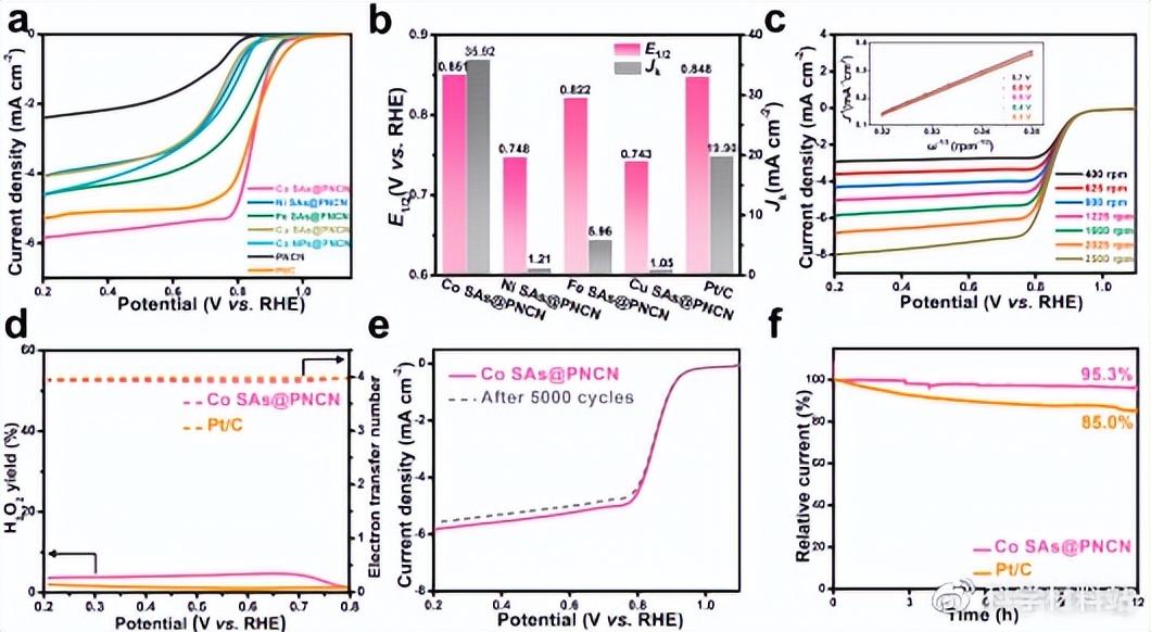 图5. 不同催化剂在0.1 M KOH溶液中的ORR性能