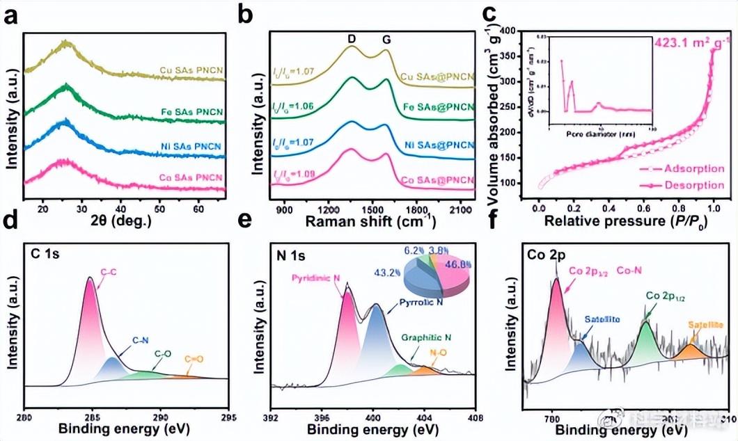 图3. MSAs@PNCN的XRD、Raman、BET和XPS表征