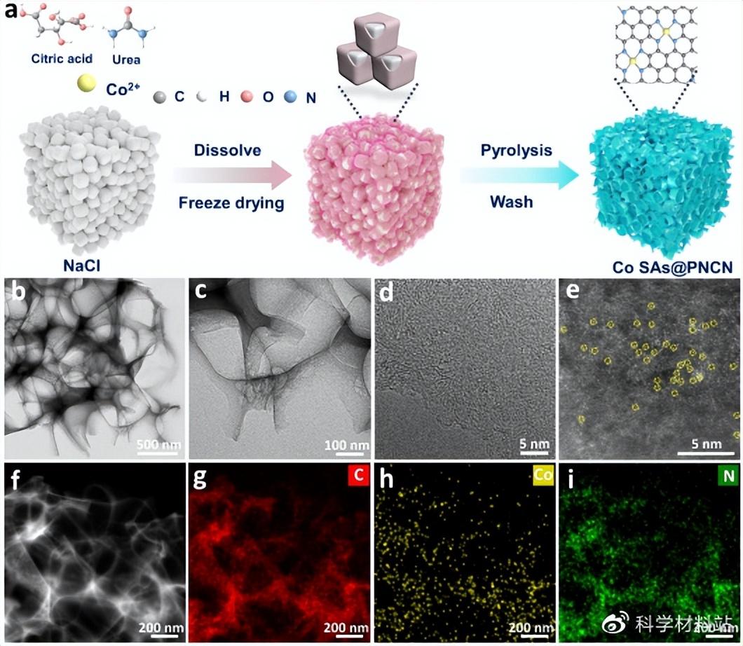 图2. Co SAs@PNCN的合成示意图和形貌表征